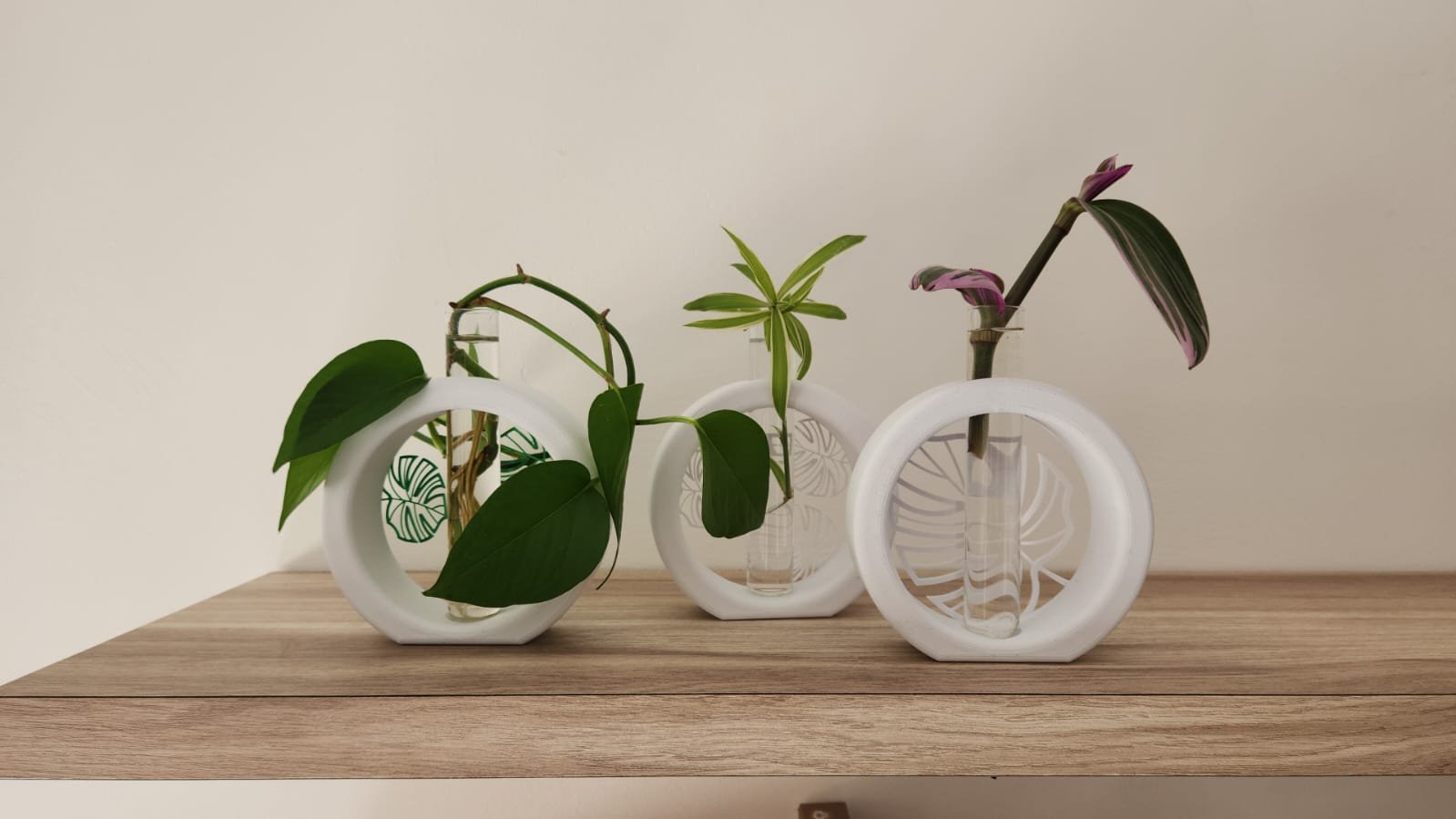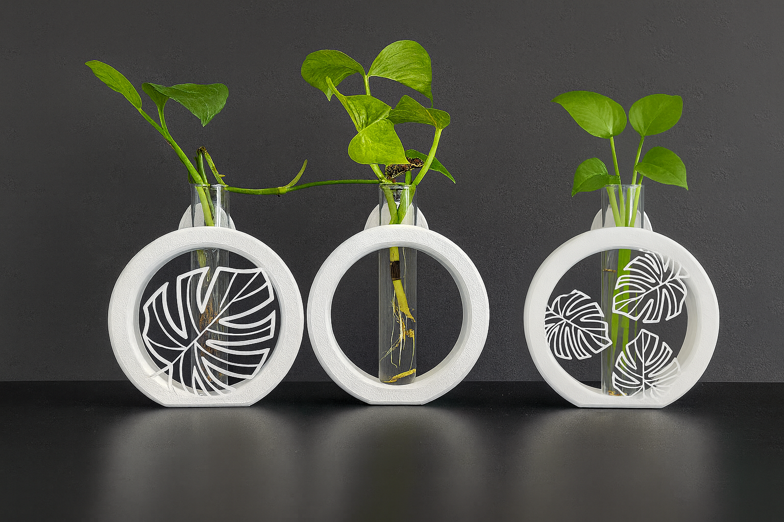 סט 3 מעמדים לייחורים בעיצוב עלים מודרני אלגנטי לבן – דקורציה חיה ונושמת