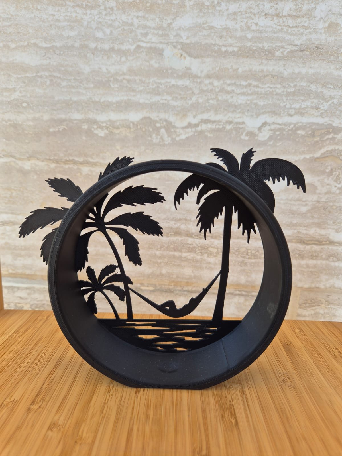 3 יחידות מודלים אורך 14 ס"מ רוחב 13 ס"מ – חוף ים דקלים ערסל , ציפור , מעמד נקי הכל בצבע שחור.