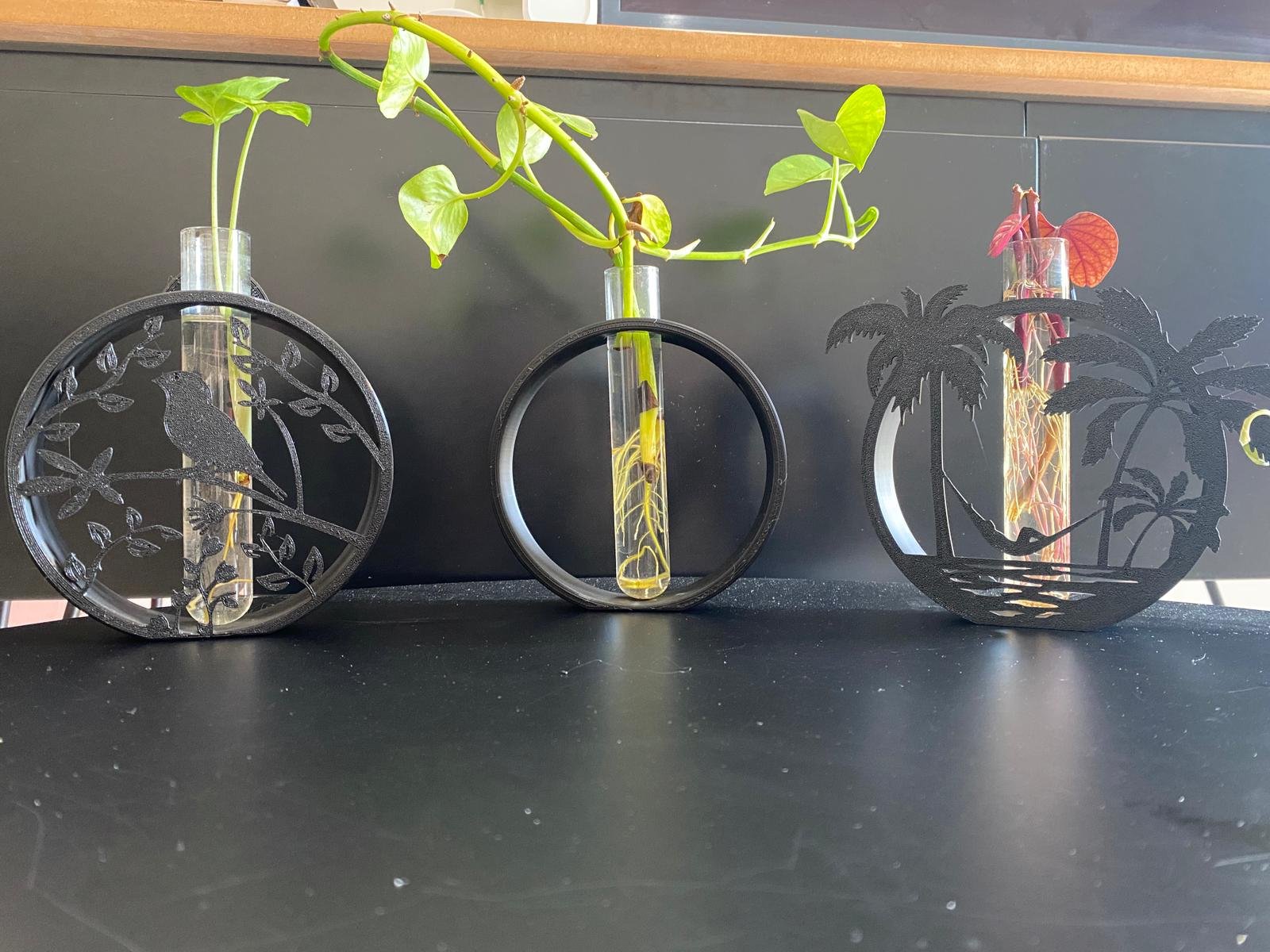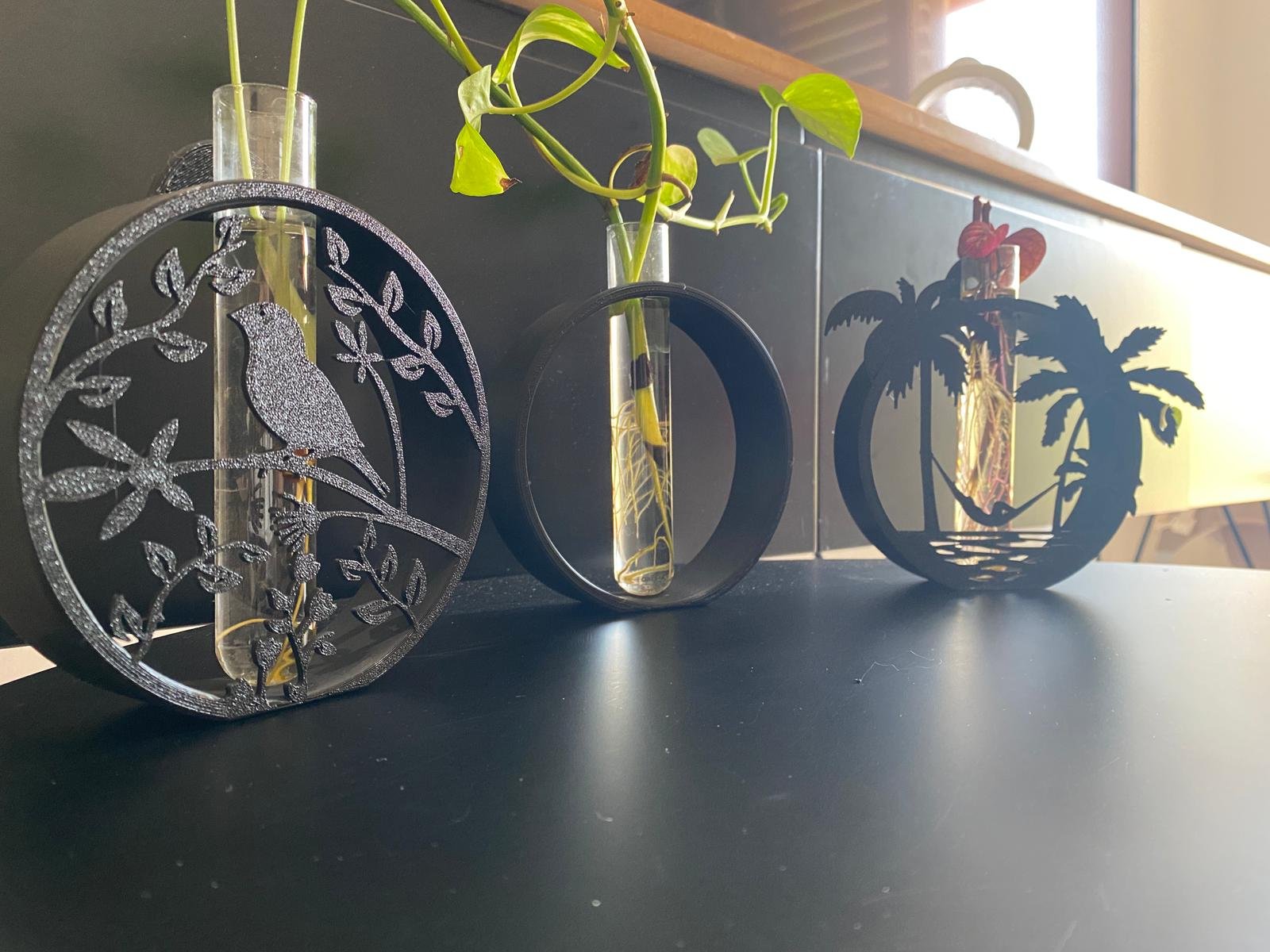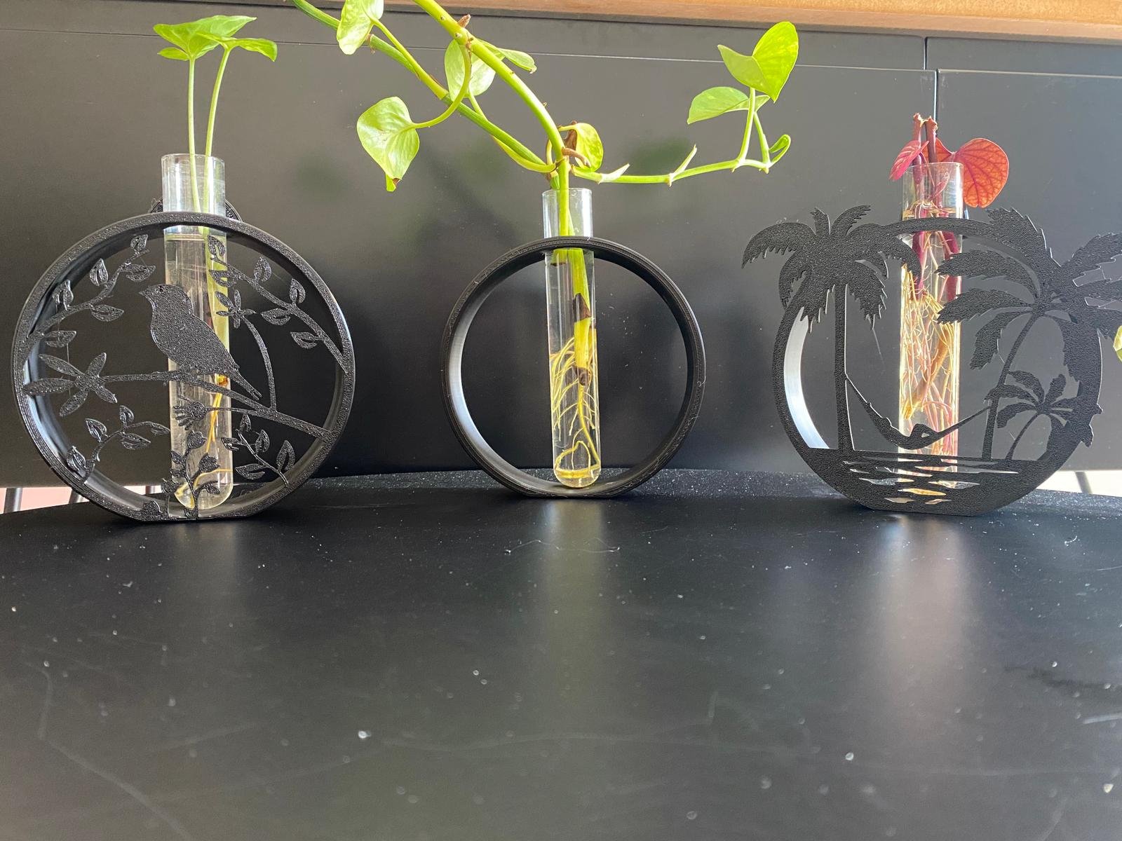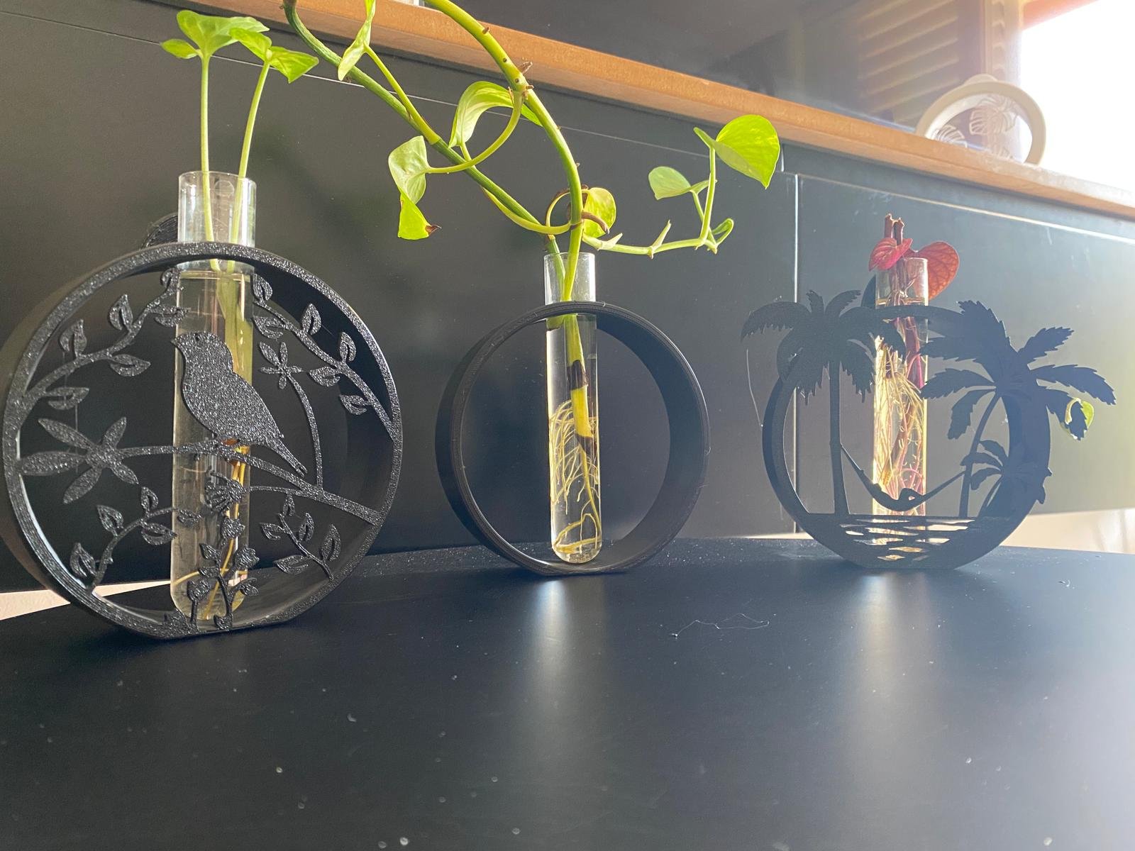 סט 3 מעמדים לייחורים בעיצוב ערסל מרגיע מודרני אלגנטי שחור – דקורציה חיה ונושמת