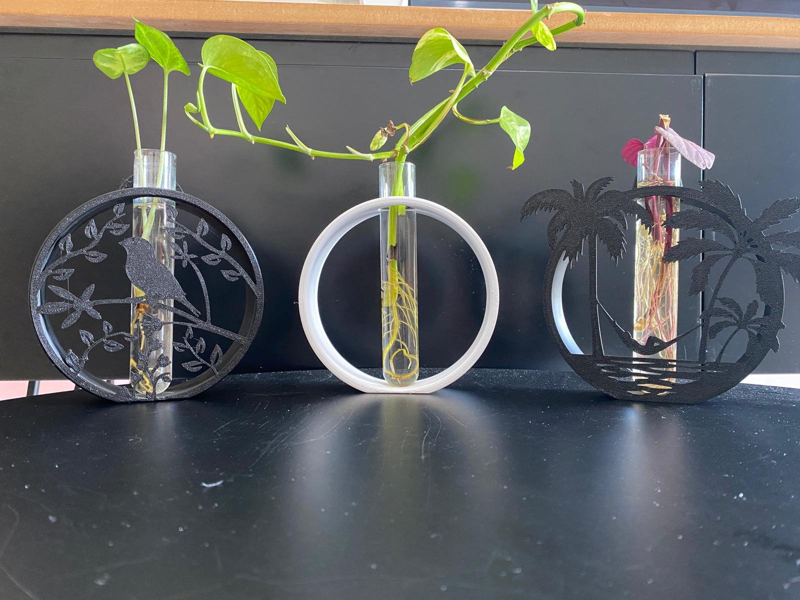 הסט כולל מעמדים מודרניים עם מבחנות זכוכית איכותיות, המאפשרים לגדל ולהשריש מגוון צמחי בית בצורה אסתטית ונקייה. העיצוב האלגנטי משתלב בקלות בכל חלל – סלון, מטבח, משרד או חדר שינה – ומוסיף נגיעה ירוקה שמרגיעה את האווירה ומעניקה תחושת טבע קרוב.